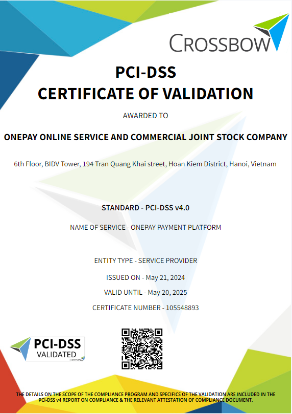 OnePay tuân thủ các quy định về hạ tầng kỹ thuật, đảm bảo an toàn bảo mật thông tin của các tổ chức thẻ quốc tế, ngân hàng trong nước