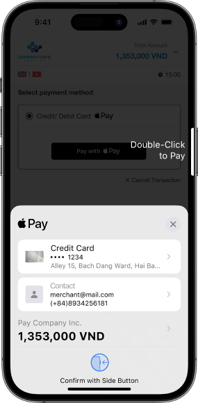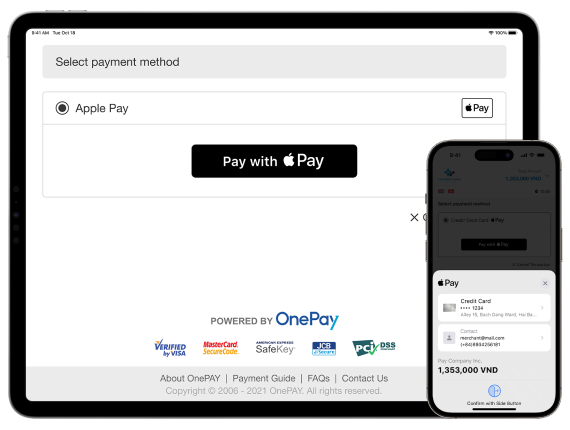 Customers click Pay with Apple Pay button on OnePay checkout page